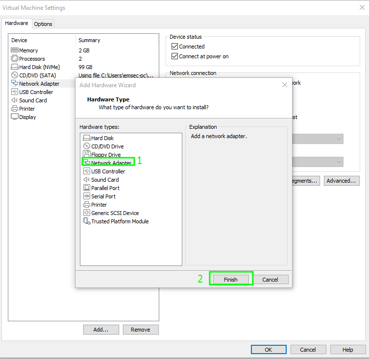 Select Network Adapter and click Finish