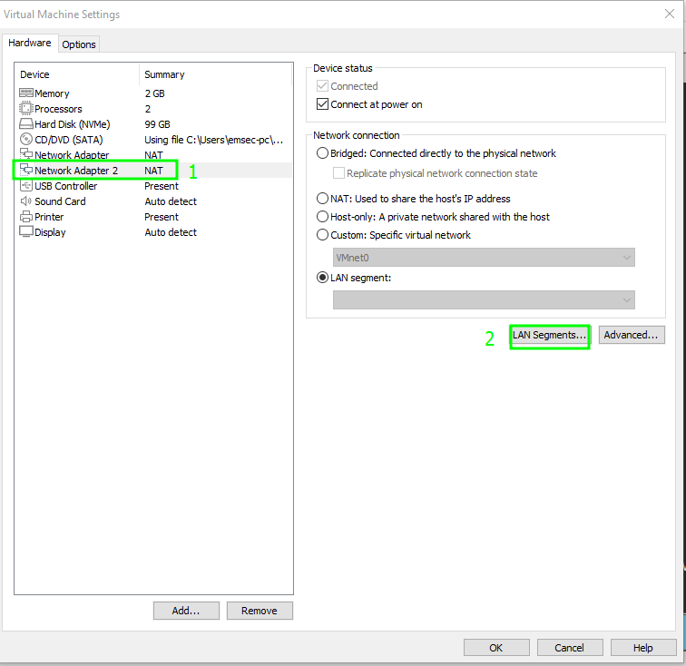 Create a LAN Segment called ‘LAB.LOCAL’