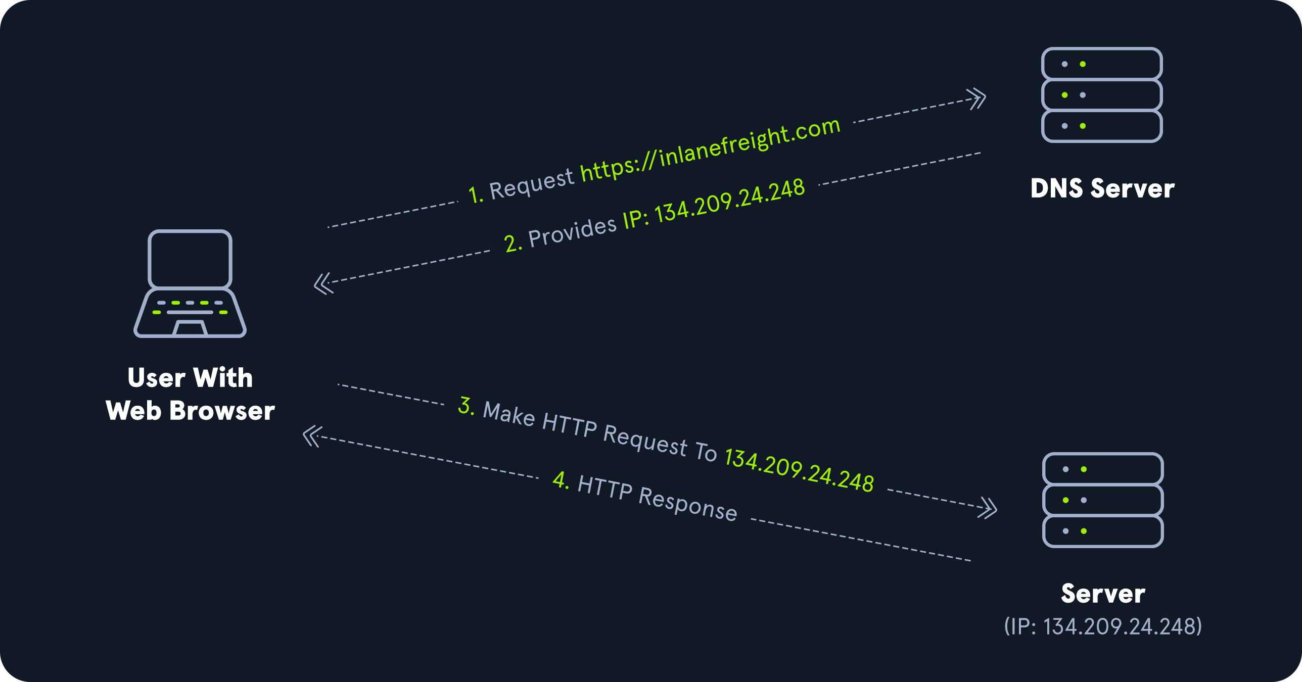 When a user enters a domain name in a web browser, the device queries a DNS server to obtain the corresponding IP address.