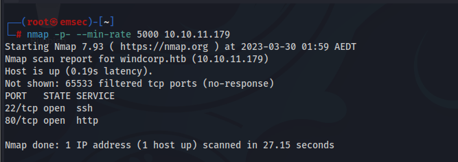 nmap -p- --min-rate 5000 10.10.11.179