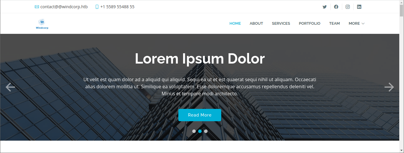When trying to head to the webpage, we need to use the www.windcorp.htb domain.