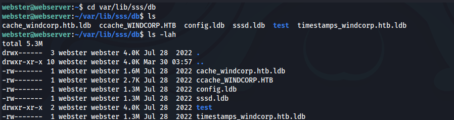 Looking through the zip file, I came across numerous configuration files. My attention was immediately drawn to the /var/lib/sss/db directory, which contained several ldb files.