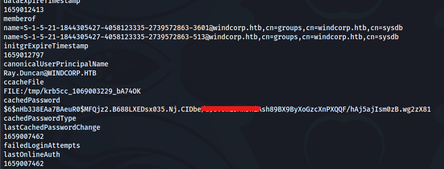 I discovered a credential by running the ‘strings’ command on the cache_windcorp.htb.ldb file, which revealed that the associated user was ‘ray.duncan’