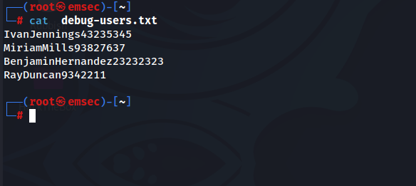 Within this debug-users.txt file, we find an interesting output.